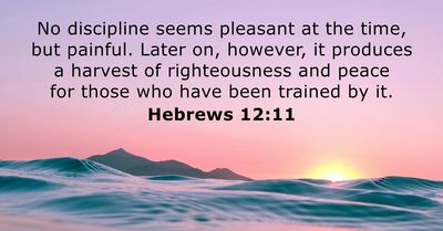 - Hebrews 12:11 - "No discipline seems pleasant at the moment, but painful. Later on, however, it produces a harvest of righteousness and peace for those who have been trained by it."